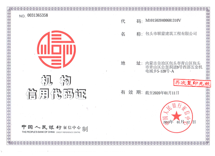 聯(lián)蒙建筑信用代碼